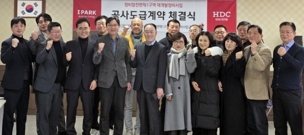 공사도급계약 체결식은 5일 오전 용산 정비창 전면 제1구역 조합 사무실에서 열렸으며, 윤우진 HDC현대산업개발 도시정비부문장과 김영식 조합장 등 관계자들이 참석했다. HDC현대산업개발은 이번 사업을 통해 단순 시공을 넘어 기획과 운영까지 책임지는 디벨로퍼 방식의 정비사업 모델을 제시한다는 계획이다.