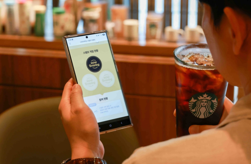 | ▲ NOW Brewing으로 주문한 고객. (사진=스타벅스 코리아 제공) |