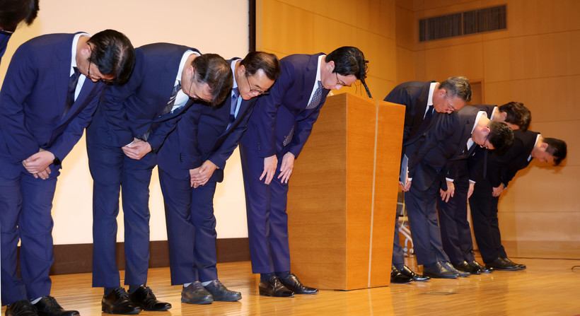 ▲ 조좌진 롯데카드 대표이사 사장 등이 18일 서울 중구 부영태평빌딩에서 사이버 침해 사고에 대한 대고객 사과를 하고 있다. (사진=newsis) |