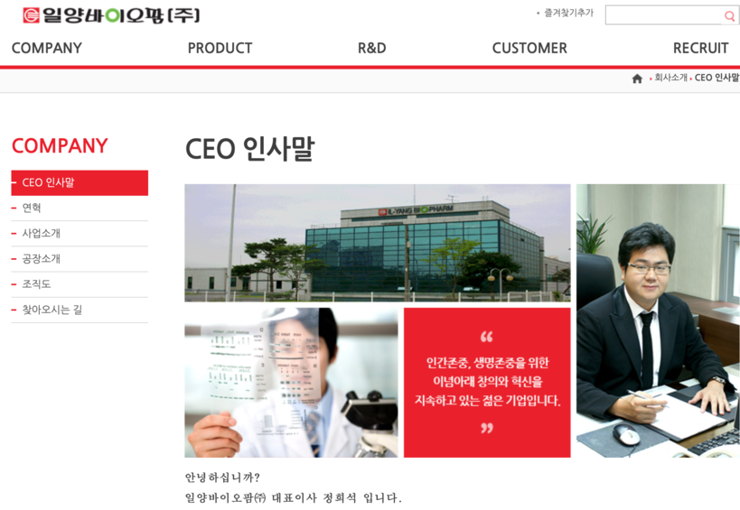 | ▲일양바이오팜(주) 홈페이지 갈무리. |