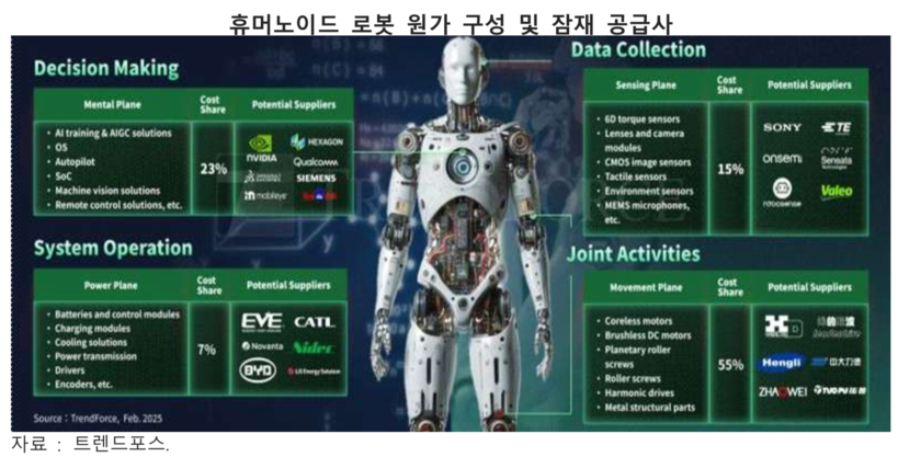 또 휴머노이드 산업 육성은 반도체·배터리·센서 등 핵심 부품 수요를 키우고, 이는 다시 로봇 성능과 원가 경쟁력을 높이는 선순환 구조를 만들 수 있다는 분석이다.