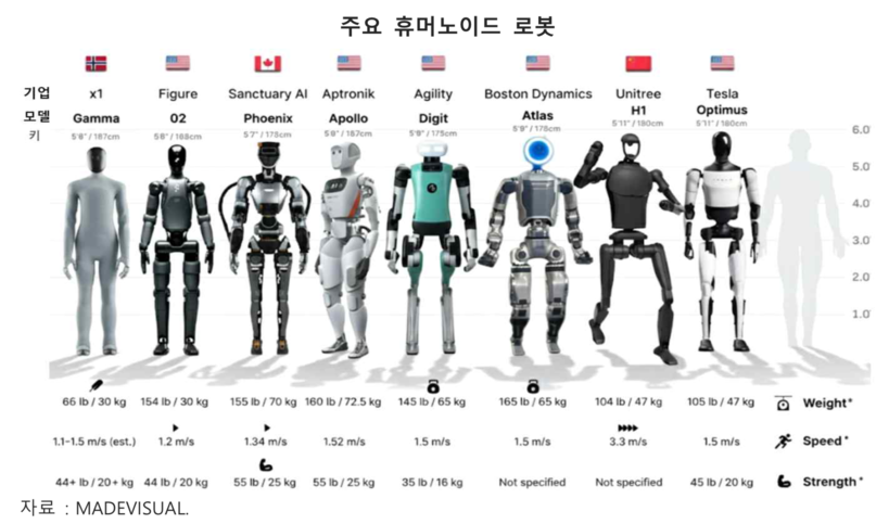 현재 휴머노이드 로봇 시장의 선두주자는 미국과 중국이다. 테슬라는 2026년 3세대 ‘옵티머스’를 공개하고 2030년까지 연간 100만 대 생산을 목표로 하고 있다. Figure AI, Agility Robotics 등 미국 기업들도 양산 체제 구축에 속도를 내고 있다.