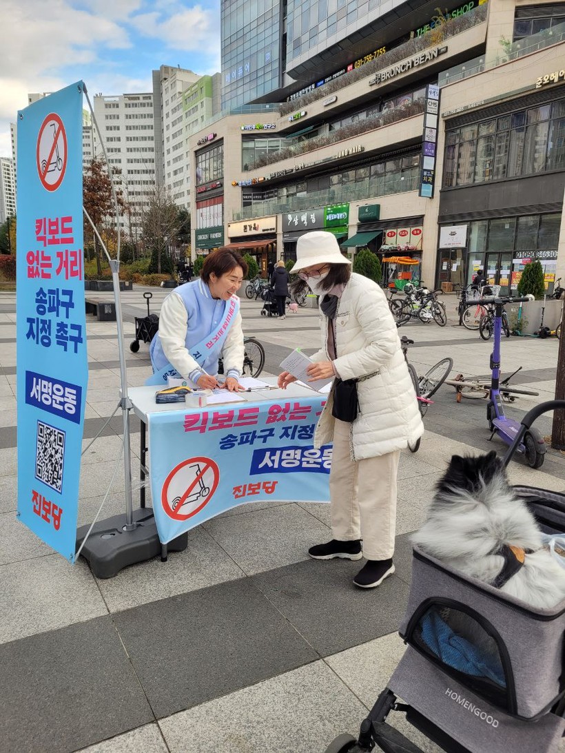 | ▲ 송파구 “킥보드 없는 거리” 지정 촉구 서명 (사진=진보당 강동송파위원회) |