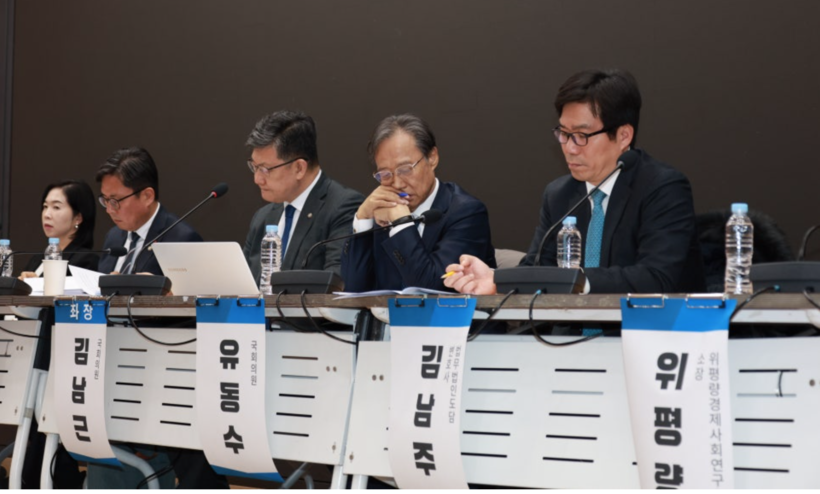 | ▲ 지난 21일 국회 의원회관에서 열린 ‘홈플러스 이대로 문 닫게 할 것인가’ 좌담회 현장 모습. (사진=유동수 의원실 제공) |