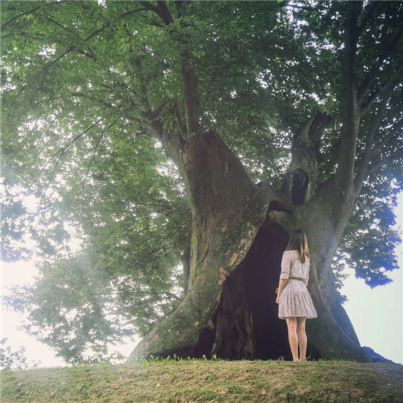 ▶ 오백 살이 훨씬 넘은 ‘황순원 소나기 나무’이자 ‘첫사랑 나무’는 원래 마을을 지키는 당산나무입니다. 그 옛날부터 마을 사람들이 어려운 일이 있으면 찾아와 기도를 올리며 소원을 빌던 당산나무는 마을 뒷동산에 자리 잡고 있어요. 그런데 언제부턴가 인근 젊은 연인들의 데이트 코스가 되어 공공의 비밀 장소로 자리매했다고 하네요. 그들만의 장소에 쪽지 편지를 숨겨 소통하던 공간이기도 했답니다. 처음 ‘황순원 소나기 나무’와의 만남은 너무 크고 전지가 되지 않아 무서움을 안겨주었지요. 차츰 나뭇가지를 전지 하고 드러난 뿌리는 봉분 세우듯 덮어 관리한 지금은 사람들에게 더욱 의미 깊은 나무이자 장소가 되었지요. 그래서 ‘황순원의 소나기’에서 보듯 ‘첫사랑 나무’라 명명했어요. 그동안 첫사랑을 나누던 모든 사람이 다시 찾아와 그 애틋한 첫사랑의 페이지를 넘기며 레트로 감성을 소환하도록 기원하면서요. 어쩌면 조선의 성군인 세종대왕 시절에 태어났을지 모를 당산나무, 저는 어르신 나무의 안부를 여쭙기 위해 아침마다 산책하며 찾아뵙곤 하지요. 오늘도 평안하신가요?
