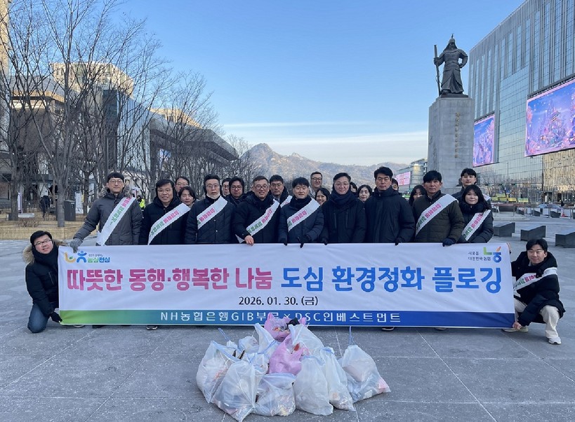 NH농협은행 GIB부문은 지난 30일 DSC인베스트먼트 임직원들과 함께 서울 광화문과 시청 일대에서 플로깅(plogging) 활동을 진행했다고 밝혔다. 이번 활동은 출근 시간대 유동 인구가 집중되는 중심업무지구를 중심으로 이뤄졌다.