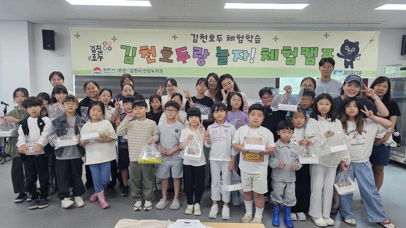 이번 행사는 김천 호두의 유래와 우수성을 알리고, 다양한 활용 방법을 소개하기 위해 마련됐다. 참가 학생들은 호두 수확 체험을 비롯해 호두 미니 도넛·브라우니 만들기, 호두 아로마 비누 제작, 캐릭터 공예 등 요리와 공예 활동에 참여하며 호두를 직접 보고 만들고 활용하는 시간을 가졌다.