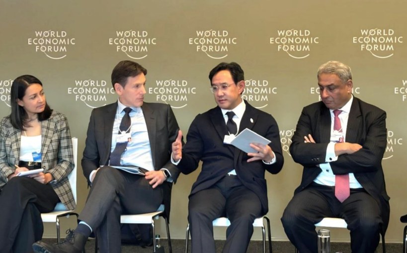 | ▲ 최윤범 고려아연 회장이 지난 19일부터 23일까지 열린 다보스포럼에 참석해 글로벌 핵심광물 공급망의 미래 방향성을 제시했다. 21일 열린 핵심광물 분야의 전략적 파트너십과 투자 세션에 최 회장이 공식 연사로 나서 발언하고 있다. (사진=고려아연 제공) |