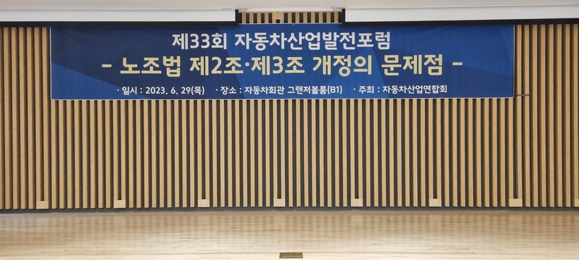 [일요주간=김영란 기자] 자동차산업연합회(KAIA)는 6월 29일(목) 오전 09시 30분 「노조법 제2조·제3조 개정의 문제점」을 주제로 제33회 자동차산업발전포럼을 개최했다.