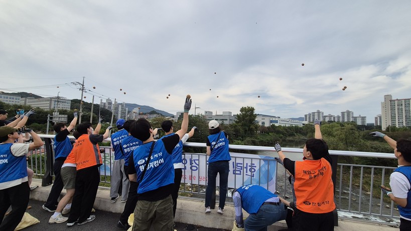 이번 행사에는 한림제약 임직원 환경지킴이 30여 명이 참여해 경안천 일대 1.5km 구간에서 쓰레기 수거와 유해식물 제거 활동을 진행하며 수질오염 예방에 힘썼다. 또한 사전에 준비한 EM(유용 미생물) 흙공을 하천에 투척해 수질 개선과 생태계 회복에도 기여했다. EM 흙공은 발효된 유용 미생물과 황토를 혼합해 만든 친환경 수질 정화제로, 하천에 투입되면 서서히 분해되면서 물속 오염물질을 정화하고 악취를 제거하는 역할을 한다.