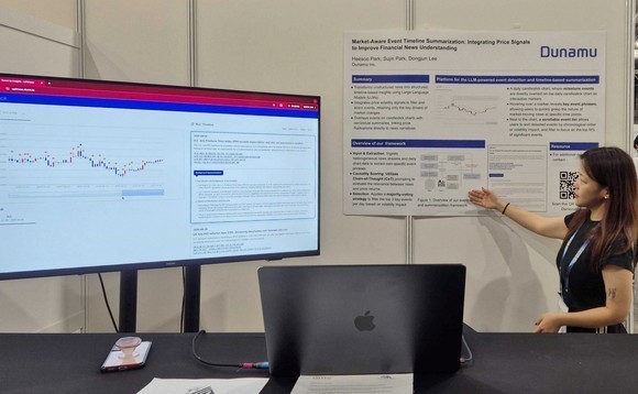 박희수 두나무 머신러닝팀 연구원은 AAAI 데모트랙에서 ‘시장 반응형 이벤트 타임라인 요약: 가격 신호 통합을 통한 금융 뉴스 이해도 향상(원문: Market-Aware Event Timeline Summarization: Integrating Price Signals to Improve Financial News Understanding)’ 논문을 발표하고 두나무가 자체 개발한 시스템을 직접 시연했다.