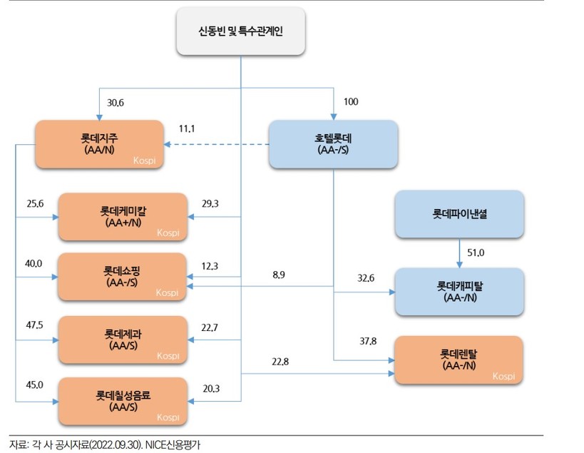 | ▲롯데그룹 지배구조도 요약. 사진=NICE신용평가 |