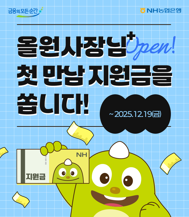 [일요주간=김완재 기자] NH농협은행이 개인사업자와 예비 사업자를 위한 맞춤형 서비스 「올원사장님+」를 NH올원뱅크에서 선보이며 오픈 이벤트를 진행한다. 이번 서비스는 12월 19일까지 운영되며, 사업 운영과 관리에 필요한 다양한 기능을 한곳에서 제공하는 것이 특징이다.