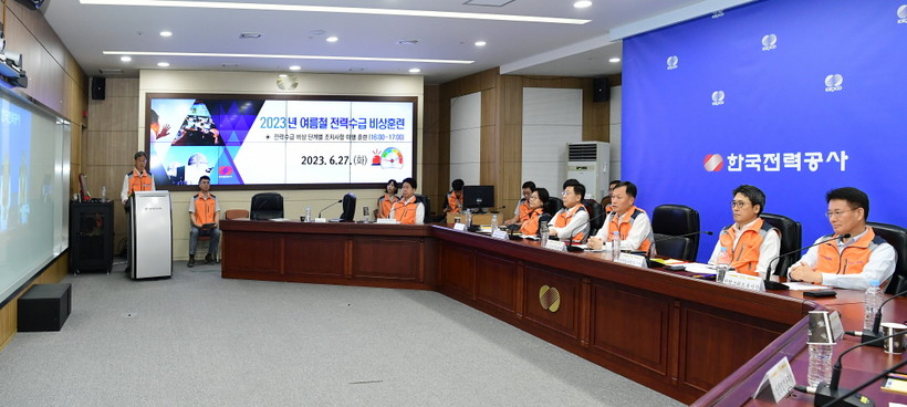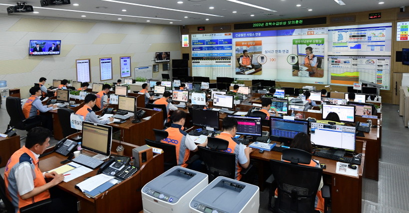 | ▲ 6월 27일(화)에는 본사 재난종합상황실(전남 나주 소재)에서 전국 15개 지역본부가 동시에 참여하는 『전력수급비상 모의훈련』을 시행하여, 발전설비 고장 등의 예기치 못한 수급상황 발생 시, 비상단계별 예비력 추가 확보방안과 대국민·언론·유관기관과 상황전파 시스템을 확인하여 수급비상 대응 능력을 점검했다.(사진=한국전력) |