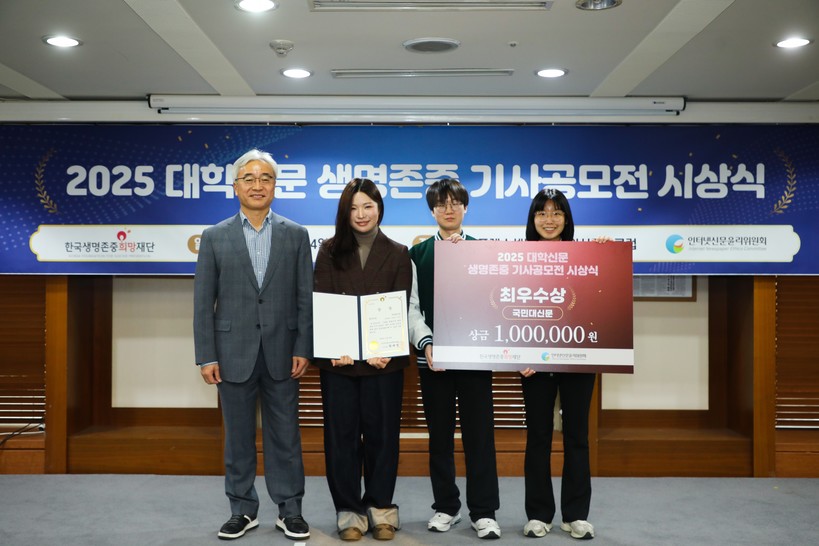 인터넷신문윤리위원회(위원장 이재진)는 24일 프레스센터에서 '2025 대학신문 생명존중 기사공모전' 시상식을 열었다고 밝혔다. 이번 공모전은 대학신문 기자들이 청년세대의 관점에서 생명존중 및 자살예방 관련 이슈를 취재하고 보도할 수 있도록 지원하기 위해 마련됐다. 한국생명존중희망재단이 주최하고 인신윤위가 주관했다.