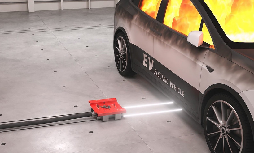 수압을 활용해 전기차 하부 뚫어..배터리팩에 직접 소화해 효과적