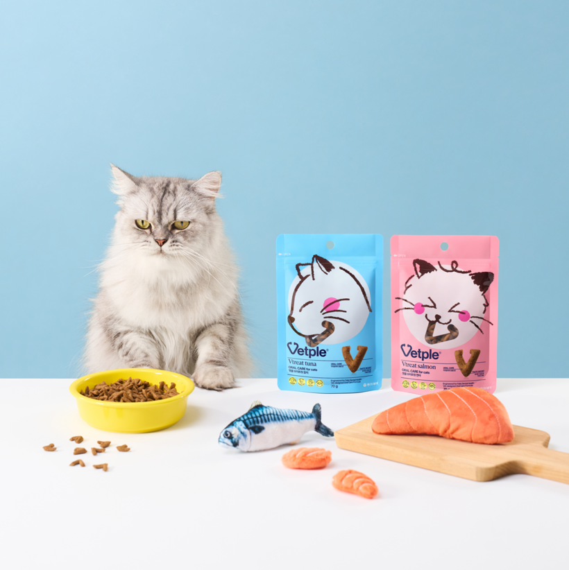 [일요주간=하수은 기자] 동아제약의 펫 헬스케어 브랜드 벳플이 반려묘 전용 구강 관리 스낵 ‘벳플 브이트릿(V Treat)’ 2종을 새롭게 선보였다.
