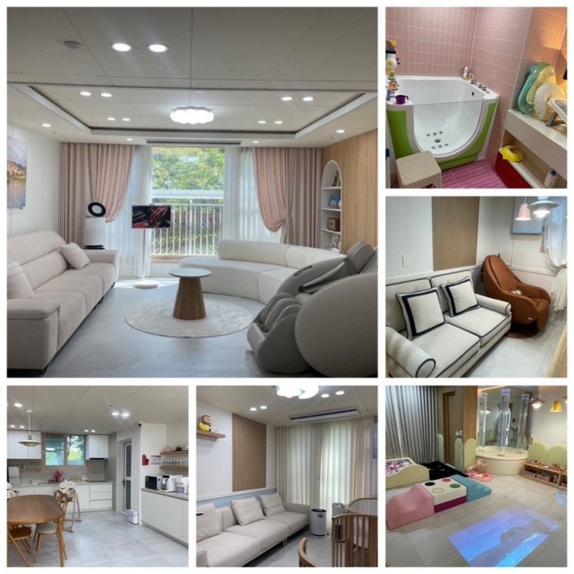 공간 구성은 커뮤니티실, 활동실, 수면실, 수유실, 스파실 등으로 영아 발달과 부모 휴식을 모두 고려했다. 분유 쉐이커, 보틀워머, 젖병 살균기 등 필수 육아 용품이 기본 비치돼 있으며, 부모를 위한 인바디 측정기와 안마기도 마련해 신체적·정신적 회복을 돕는다.