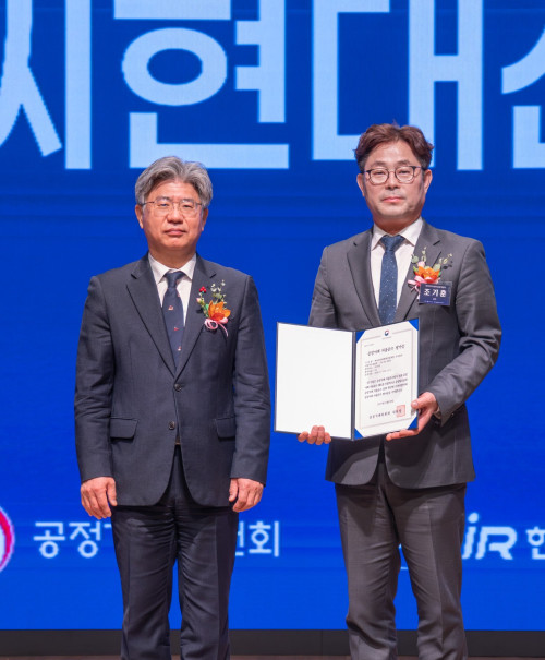 | ▲ HDC현대산업개발은 19일 대한상공회의소에서 열린 ‘2025 CP 우수기업 평가증 수여식’에서 공정거래위원회로부터 3년 연속 AA 등급과 평가증을 받았다. (사진 오른쪽 조기훈 HDC현대산업개발 경영본부장) (사진=HDC현대산업개발) |