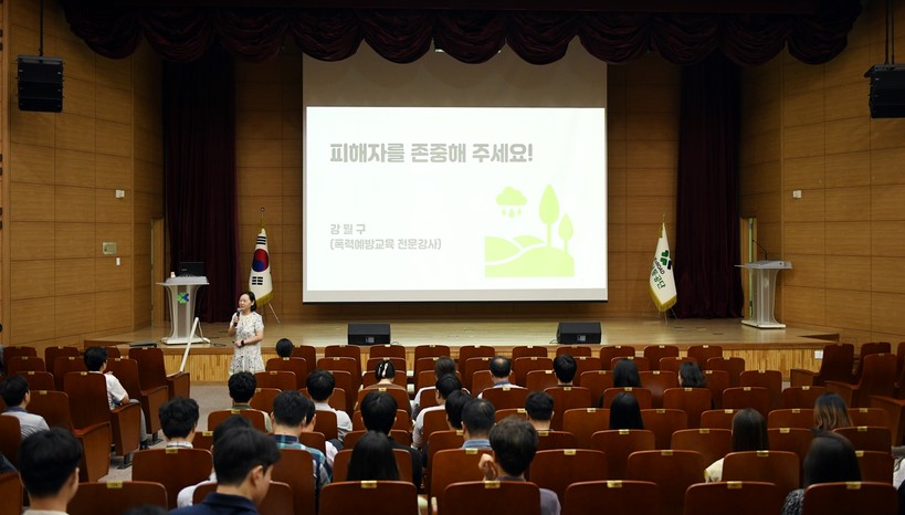 이번 강의를 맡은 강월구 전문 강사는 ‘피해자를 존중해 주세요!’ 라는 주제로 ‘성인지 감수성의 이해’, ‘젠더폭력 근절을 위한 실천방안’ 등을 강의했다.