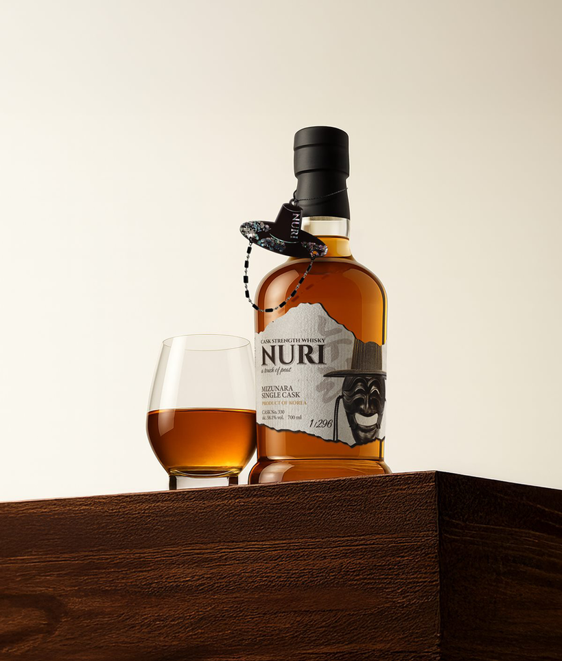 ‘누리(NURI)’는 프랑스·일본·한국, 세 나라의 위스키 기술과 환경을 결합해 탄생한 K-위스키 브랜드다. 프랑스 전통 증류소에서 생산한 싱글 몰트 원액을 한국으로 들여와 일본산 미즈나라 오크 캐스크에서 숙성과 병입을 진행했으며 한국의 기후와 숙성 환경을 거쳐 누리만의 개성을 완성했다.