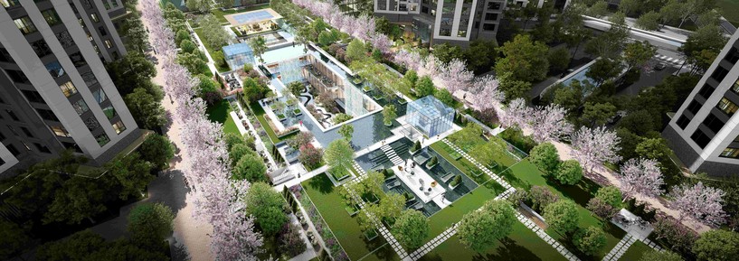▲ 중앙광장 내 수경시설 시에클 스퀘어(사진=삼성물산) |