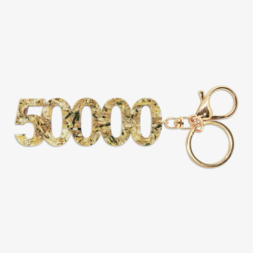 ‘행운의 돈 키링’은 5만원권 한 장 분량의 실제 화폐 조각을 투명 아크릴 안에 삽입한 국내 최초 실물형 키링으로, 5만원권 숫자 ‘50000’을 모티프로 복과 행운의 의미를 시각화했다. 가격은 10,000원이며, 가방이나 열쇠고리에 부착 가능한 친환경 감성 굿즈다.