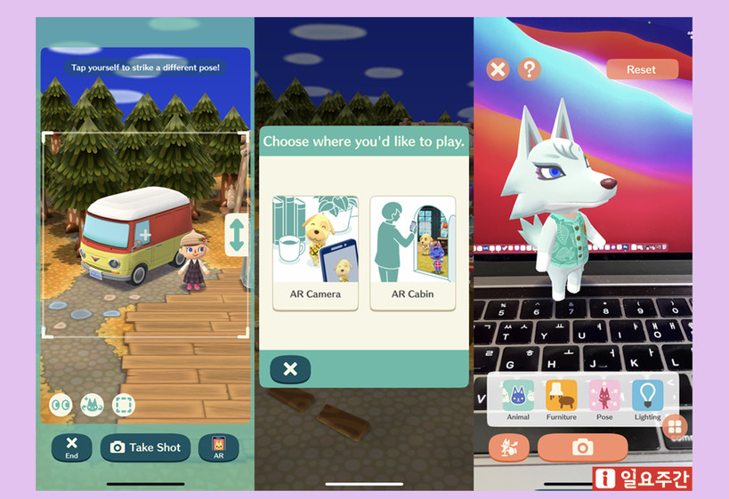 | ▲모바일용 동물의 숲: 포켓 캠프 AR 캐빈 모드 (이미지 편집=일요주간) |