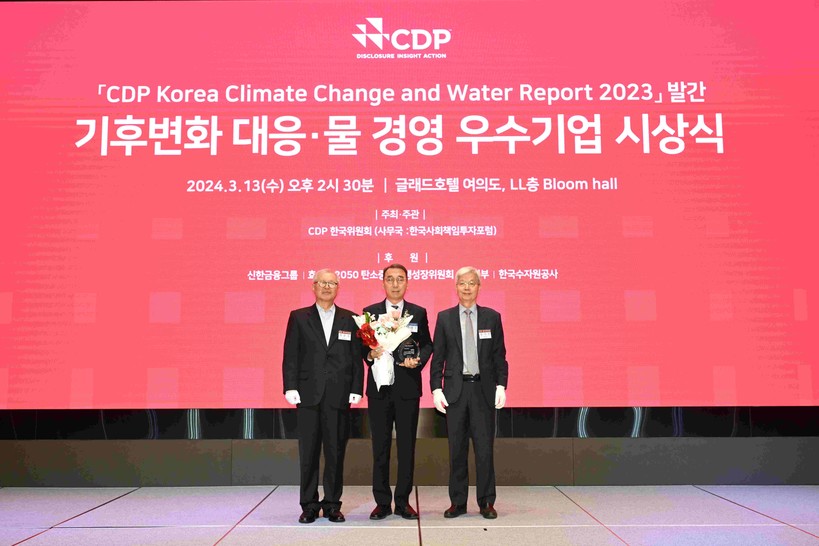 이러한 노력으로 지난 2월에 발표된 기후변화 부문 CDP 보고서 평가 결과에서 Scope1,2,3 배출량의 투명한 공개, 감축목표 및 전략, 리스크 관리 프로세스, 지배구조 등의 평가항목에서 최상위 평가를 받았으며, 지난해보다 한 단계 상승한 ‘리더십 A-’ 등급을 달성했다.