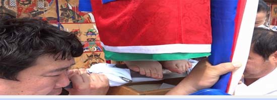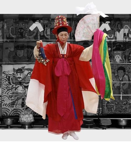 실제 굿을 하는 장면은 국내외에서 진혼굿과 추모굿을 선보이며 동양의 미를 전하는 예술가로 널리 알려진 한국의 대표 무당 중요무형문화재 82-2 김금화 만신이다.