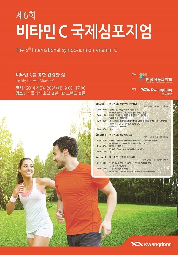 마지막 ‘비타민C의 삶의 질 향상 효과’ 세션에서는 △만성피로증후군에서 타우린과 비타민 C 항피로 효능 연구(강주섭 교수, 한양대학교 의대 약리학 교실) △최적의 비타민C 섭취량은?(Dr. Jens Lykkesfeldt, University of Copenhagen, Denmark)에 대한 발표가 있을 예정이다.