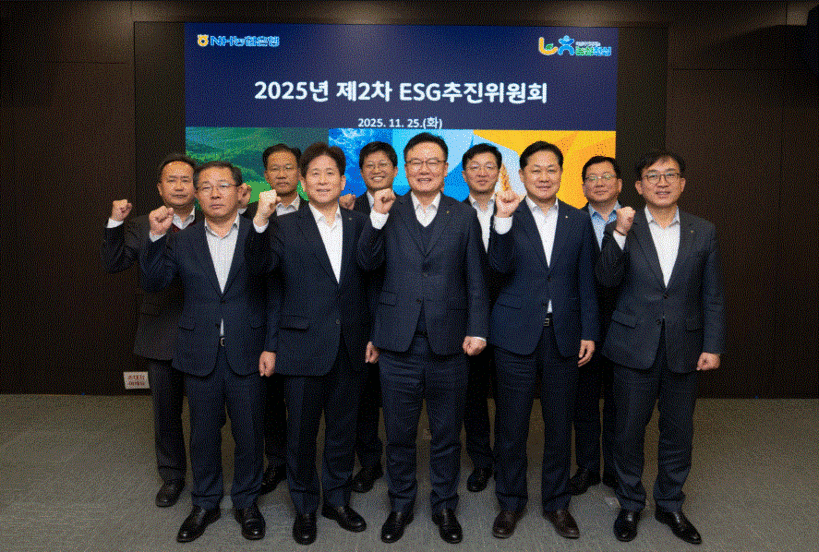 [일요주간 = 김완재 기자] NH농협은행(은행장 강태영)은 25일 서울 중구 본사에서 ‘2025년 제2차 ESG추진위원회’를 열고 올해 주요 ESG 성과를 점검하는 한편 녹색·전환금융 확대와 지속가능성 공시 체계 강화 등 2026년 ESG 추진방향을 논의했다고 밝혔다.