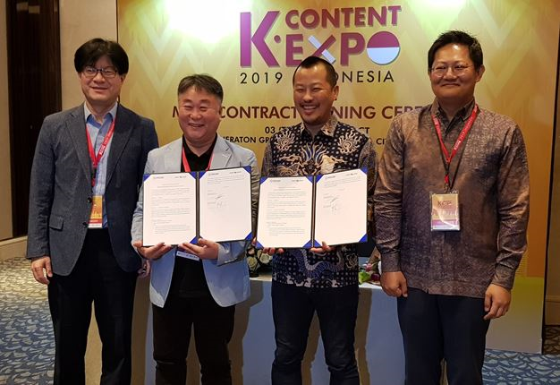 | ▲ 좌로부터 KOCCA 해외사업지원팀 김기헌 팀장, 최성덕 감독, SHOH 오승현 대표, KOCCA 인도네시아 김남걸 센터장.(사진=초이스랜드 제공) |