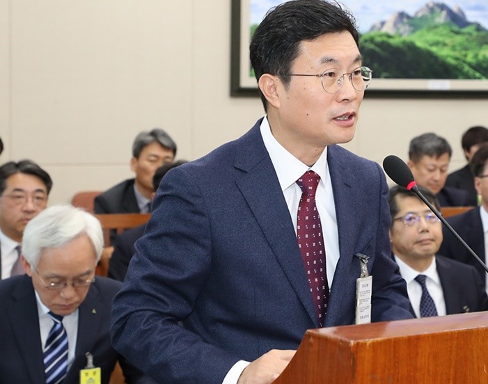 | ▲티센크루프 서득현 대표가 지난해 국회에서 열린 환경노동위원회 전체회의에 증인으로 출석해 엘리베이터 설치 협력업체 근로자 사망사고에 대한 김태년 더불어민주당 의원 질의에 답변하고 있다. (사진=뉴시스) |