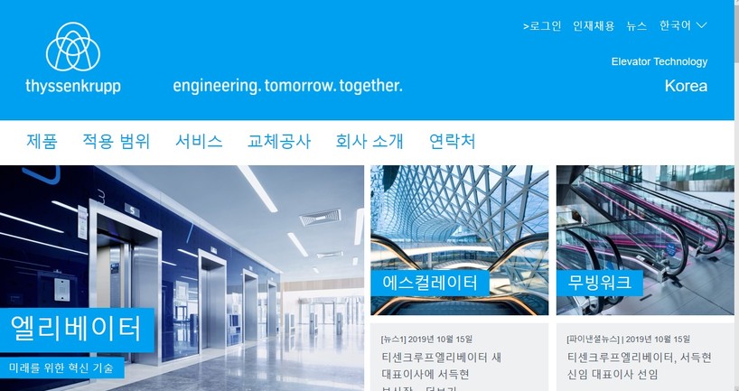 | ▲ 티센크루프엘리베이터코리아 홈페이지 갈무리 |