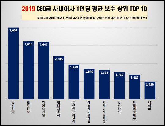 한편 CEO급 등기 사내이사와 미등기 임원의 보수 차이는 약 3배다. 미등기 임원 1인당 평균 보수는 2억6690만원으로 조사됐다.