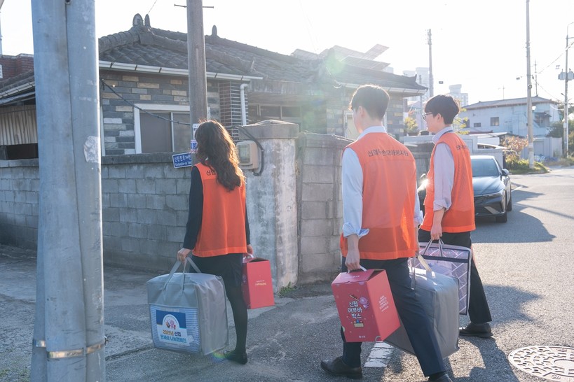 | ▲ 신협 직원들이 한파로 어려움을 겪는 이웃에게 따뜻함을 전하기 위해 난방용품을 들고 찾아가고 있다.(사진=신협) |