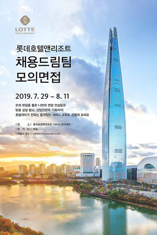 지원 신청은 8월 11일까지 롯데호텔 채용 홈페이지에서 할 수 있으며 최종 대상자 발표는 8월 16일 전후, 채용 홈페이지와 개별 연락을 통해 진행될 예정이다.