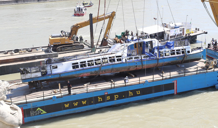 | ▲ 헝가리 부다페스트 다뉴브강 유람선 침몰 사고현장에서 선체 인양을 하고 있는 모습.ⓒnewsis |