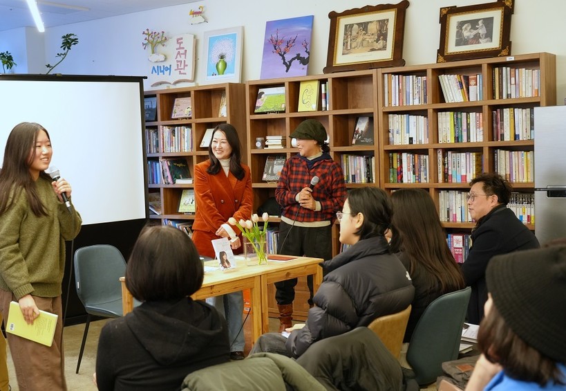 | ▲ 파주 시니어 공간 책방 <나날> 북토크 후 소감을 나누는 송진아(백석고) 학생과 함께(2026) |