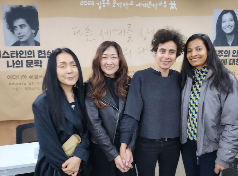 | ▲ 길동무 문학학교 세계문학교류에서 시 낭독 후 아다니아 쉬블리(Adania Shibli), 프리야 바실(Priya Basil) 소설가들과 함께(2023) |