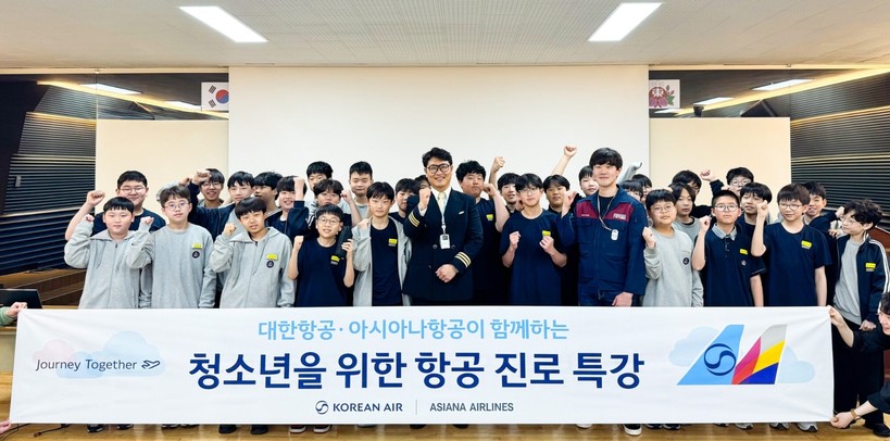 앞서 양사는 청소년 대상 진로 교육 프로그램도 공동으로 진행했다. 서울 강남구 중동중학교에서 열린 특강에서는 대한항공 운항승무원과 아시아나항공 정비사가 직접 참여해 항공 직무를 소개하고 진로 상담을 제공했다. 약 330명의 학생이 참석해 높은 관심을 보였다.