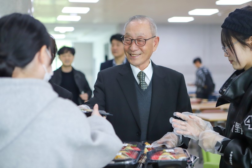 강일구 총장은 학생들에게 직접 도시락을 나누어 주며 자리에 앉았다. 형식에 얽매이지 않은 분위기 속에서 식사와 대화가 자연스럽게 이어졌다. 학생들은 학업과 대학 생활은 물론 개인적인 고민까지 꺼냈고 강 총장은 눈높이에 맞춰 답하며 의견을 주고받았다.