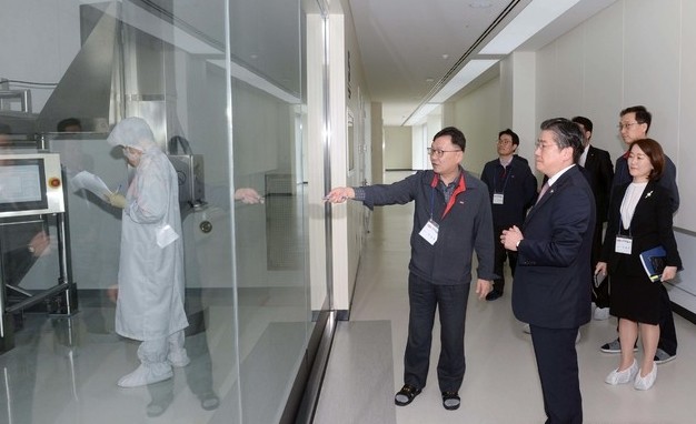 | ▲ 정승일 산업통상자원부 차관이 지난달 24일 경기도 화성시 팔탄공단에 위치한 한미약품 팔탄공장을 방문해 시설을 둘러보고 있다.(사진=산업통상자원부 제공) |