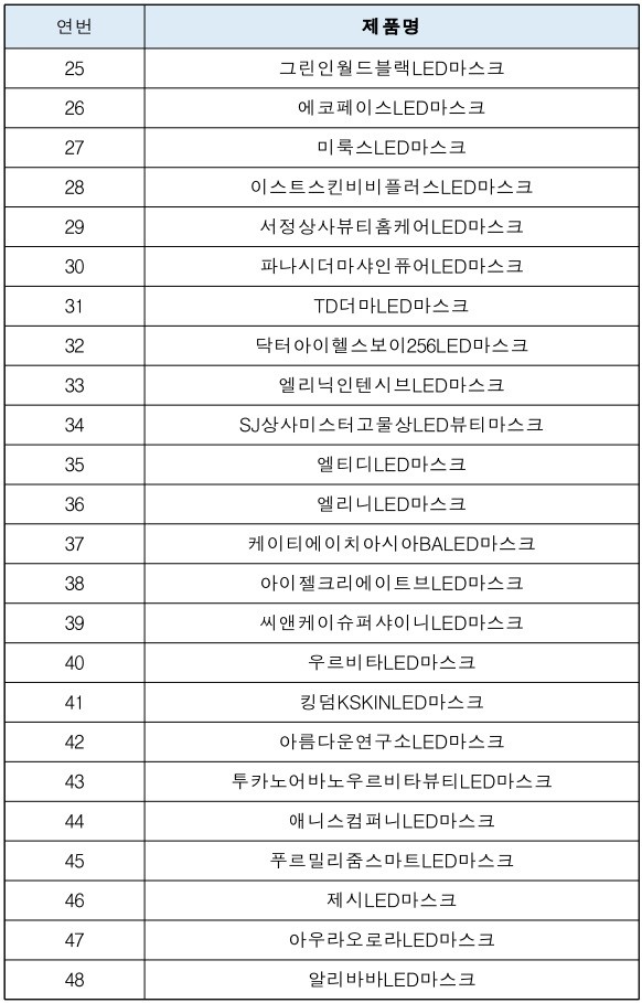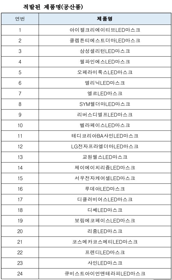 식약처 관계자는 "이번에 적발된 공산품 LED 마스크는 타당한 근거가 없거나 검증되지 않은 제한된 자료를 바탕으로 효능·효과를 표방해 광고한 사례로서 소비자는 제품을 구매할 때 광고에 현혹되지 않도록 주의해야 한다"고 당부했다.