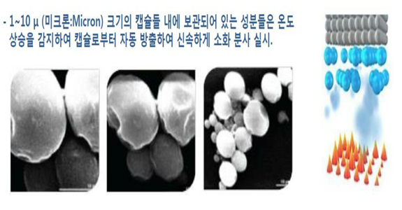 이 제품은 통신·전력·항공기·자동차 산업분야를 비롯해 군함, 일반선박 엔진 등 선박내부의 화재에 대비하여 초기에 화재를 제압 또는 진압함으로써 대형 화재로부터 인명 및 재산을 보호할 수 있는 장점을 가지고 있기에 화재에 취약한 부분에 사전 시공하여 대형 화재에 대비할 수 있는 제품이라는 게 황득규 (주)수 대표의 설명이다.