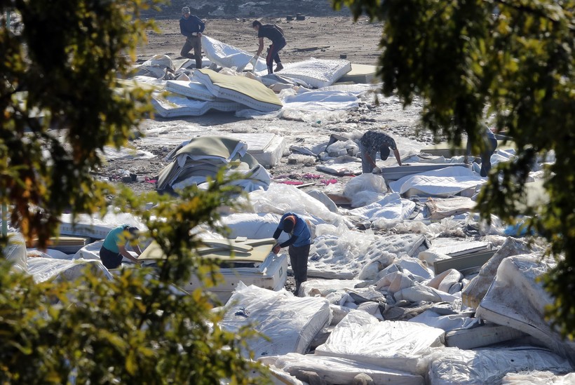 | ▲ 라돈 검출 뒤 전국에서 수거된 대진침대 매트리스가 쌓여 있는 모습 (사진=뉴시스) |