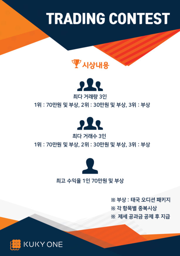 콘테스트 기간 내 최다 거래량 3명, 최다 거래수 3명, 최고 수익율 1명 등 총 7명을 선정하여 3월 23일에 시상하며, 시상자에게는 100만원 상당의 태국 여행권과 현금 등을 부상으로 제공된다.