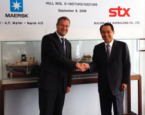 STX조선은 9일 세계 최대 컨테이너 선사인 덴마크 AP 몰러-머스크社(A. P. Moller – Maersk A/S)로부터 초대형 원유운반선(VLCC) 8척(옵션 포함)을 수주했다고 밝혔다.