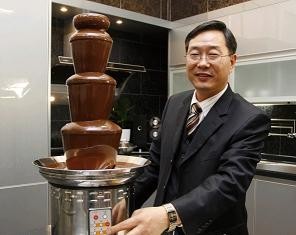 | ▲ 초콜릿퐁듀 분수기 옆에 계신 유재성 대표 | ||